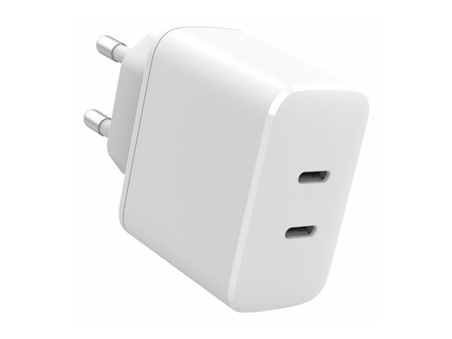 100% återvunnen plast - 35 Watt - 3 A - Apple Fast Charge, PD 3.0, QC 3.0 - 2 utdatakontakter (24 pin USB-C) - vit
